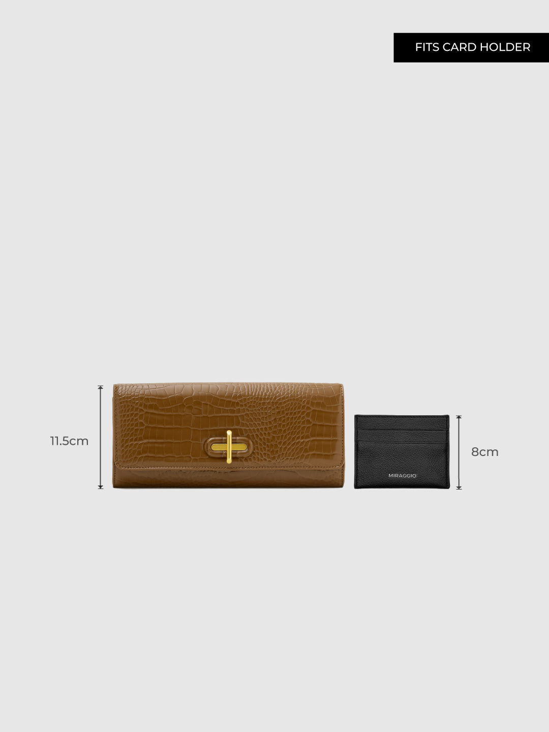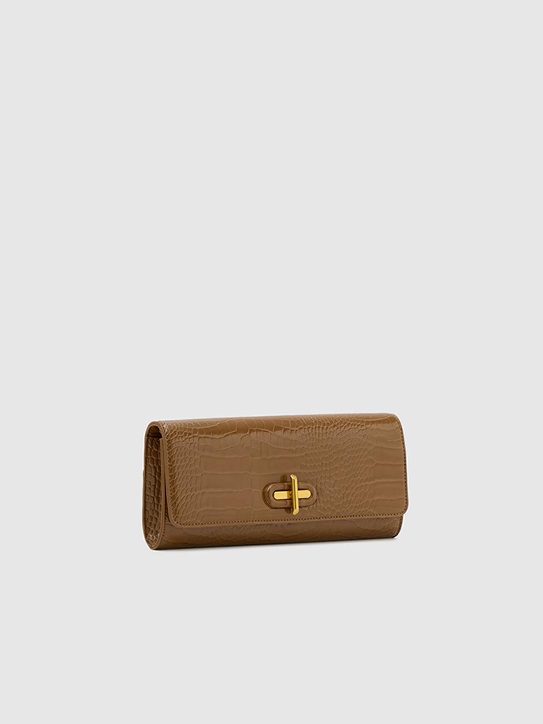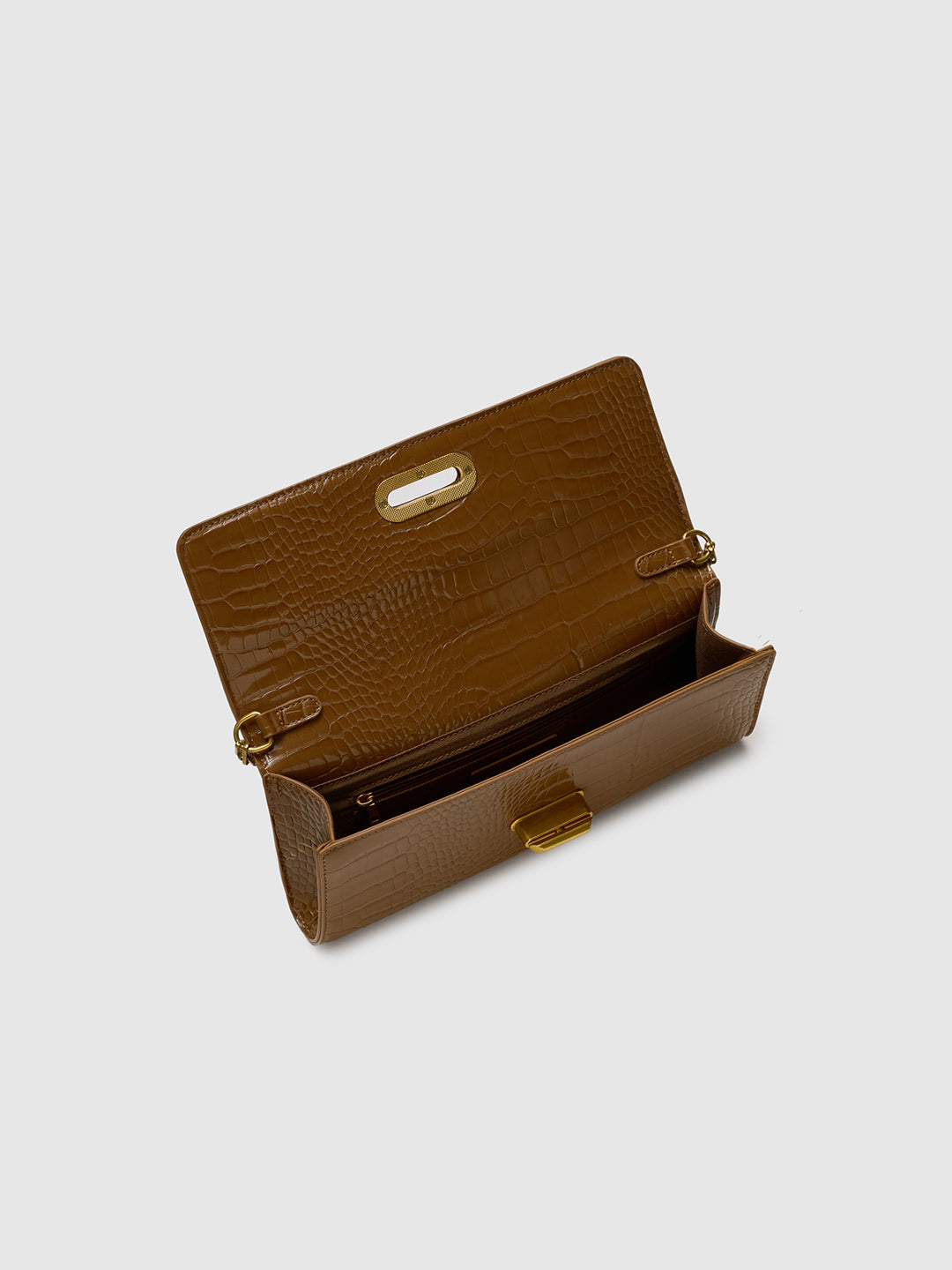 She’s got the moves and the shine, Cecilia’s croc-embossed texture and premium exotic material make her a showstopper. Inside, she keeps cards, cash, and little essentials tucked away, while swinging from get-togethers to after-party chic, gracefully. Wear with flowing skirts or metallic stilettos for a look that twirls effortlessly with the music.